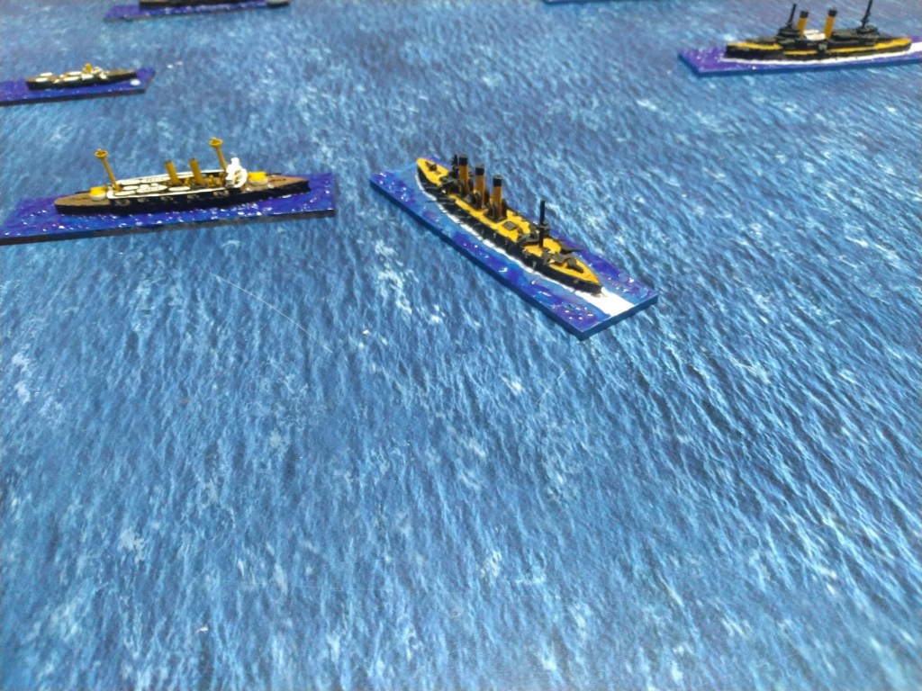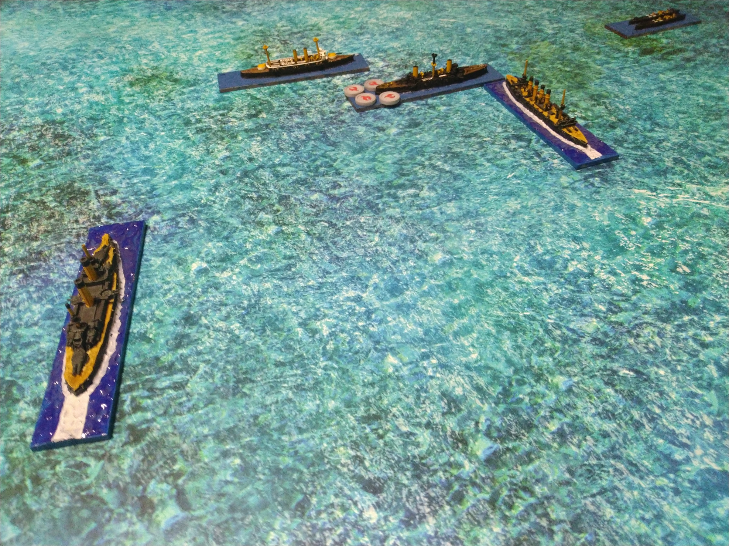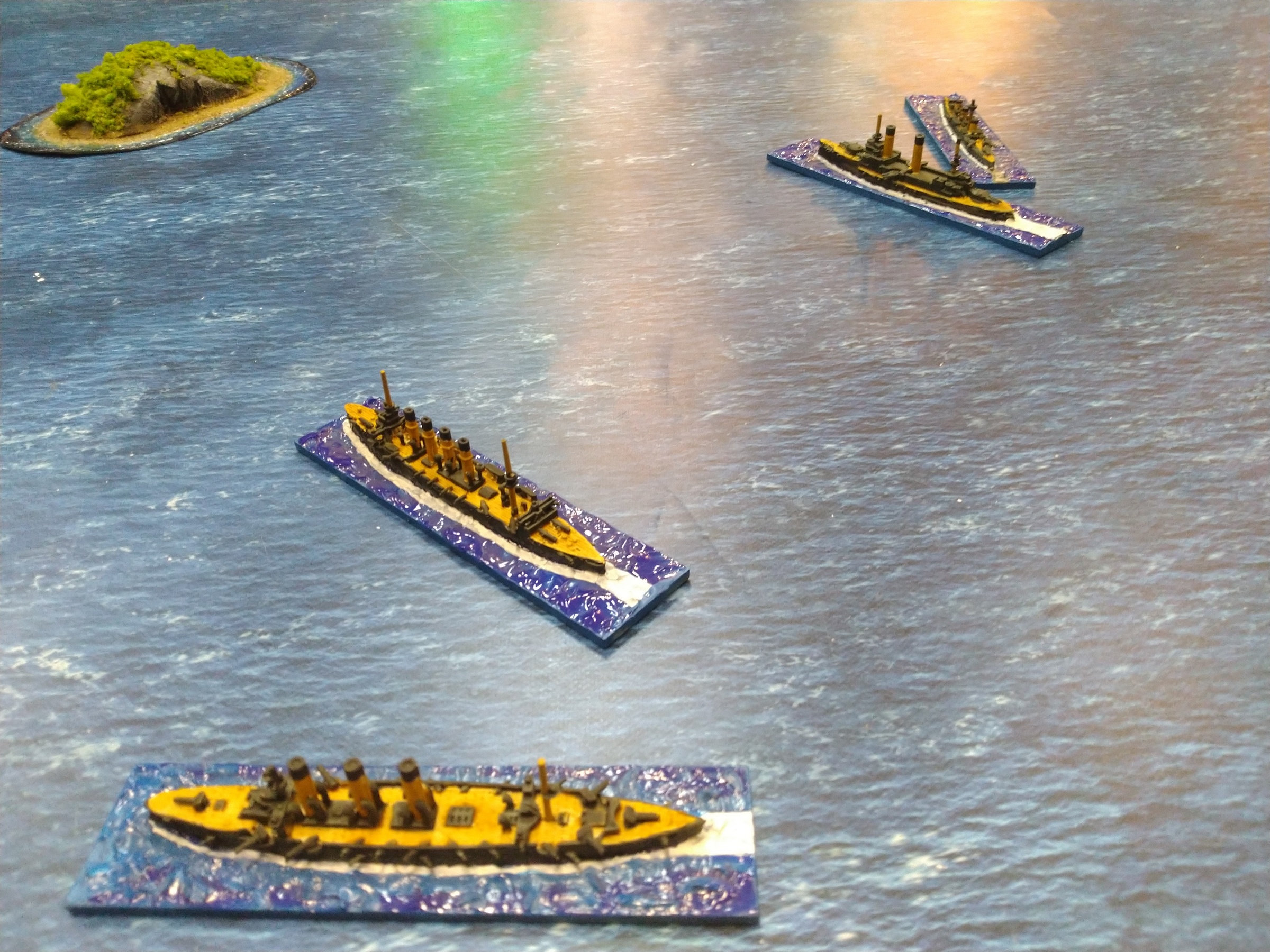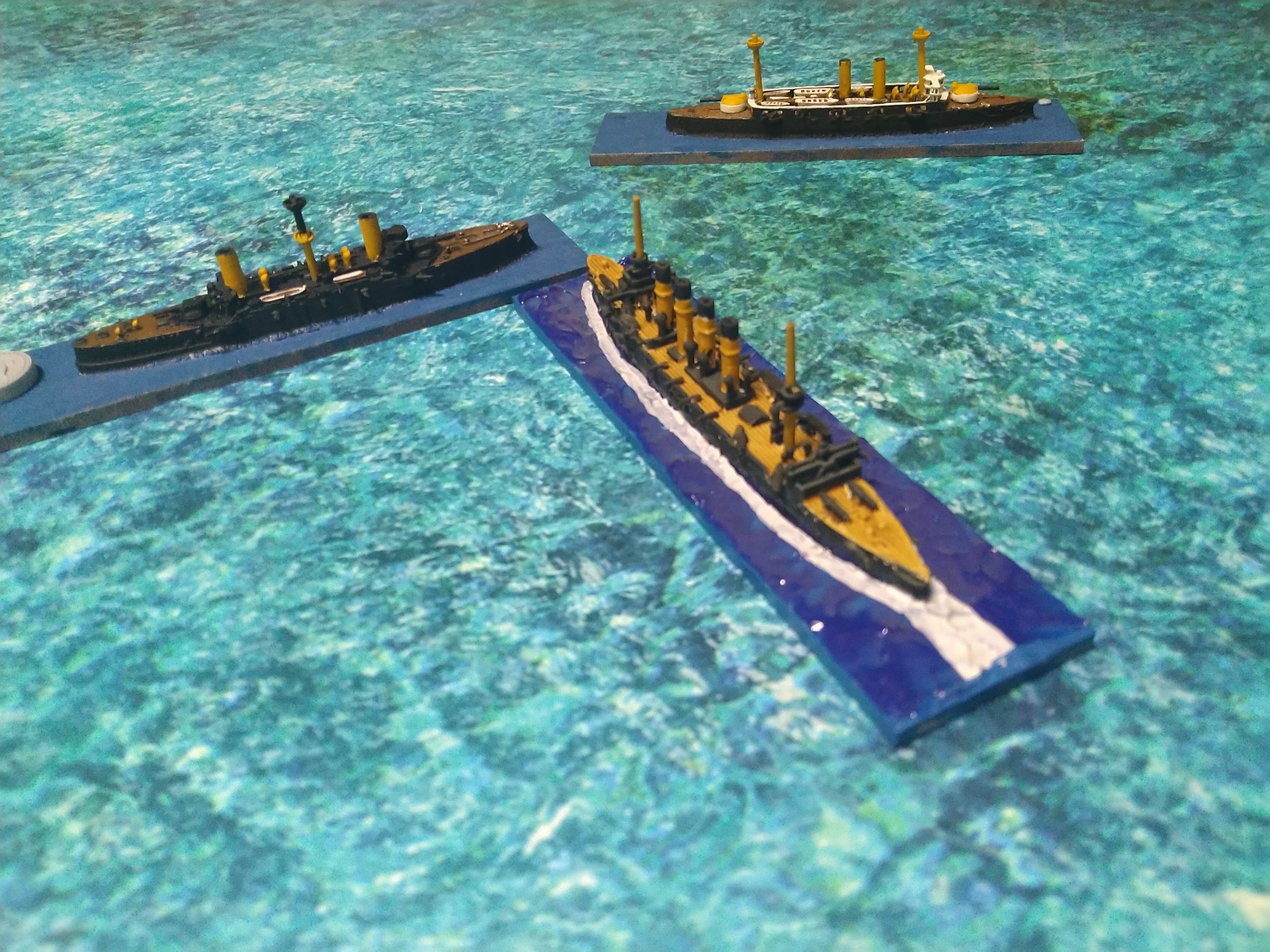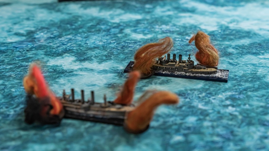 As tradition demands, we had to face each other! This time, the Americans had a battleship, and my plan to outflank them failed when my Gromoboy (or Rurik) lost its rudder.
