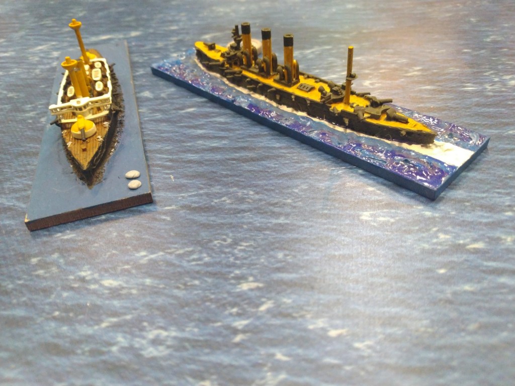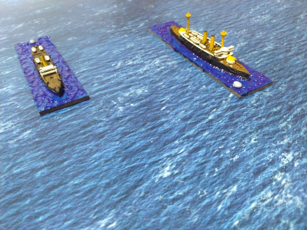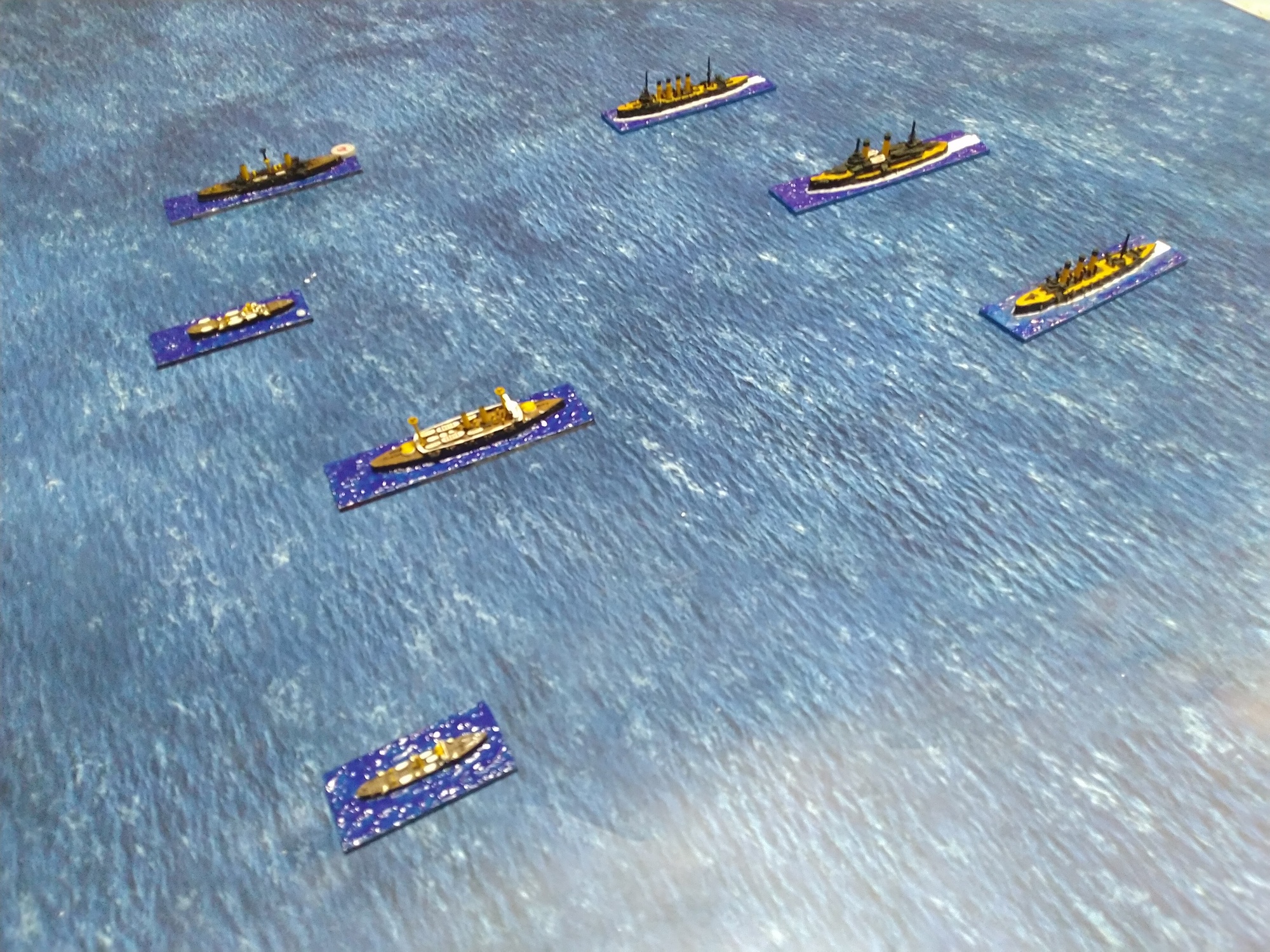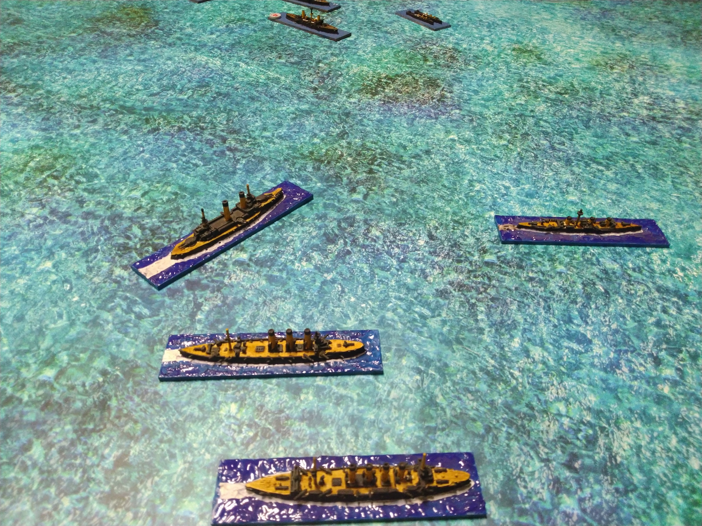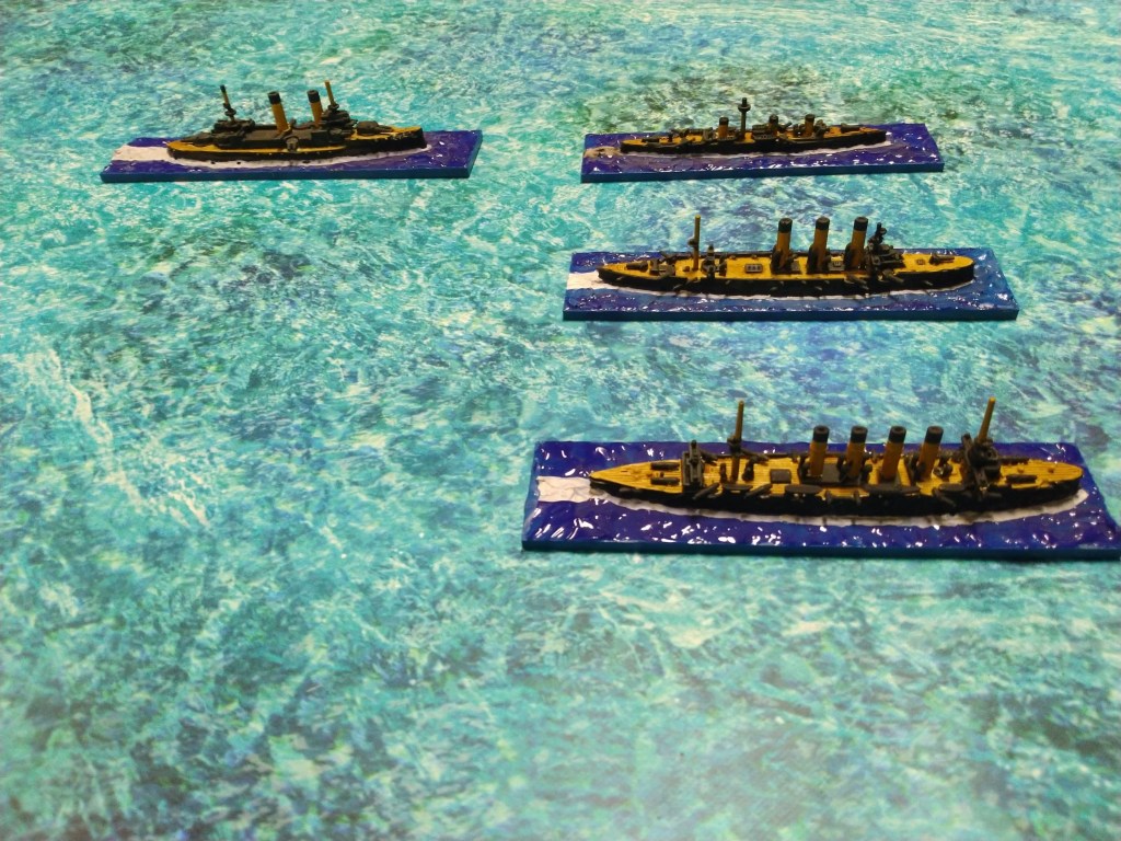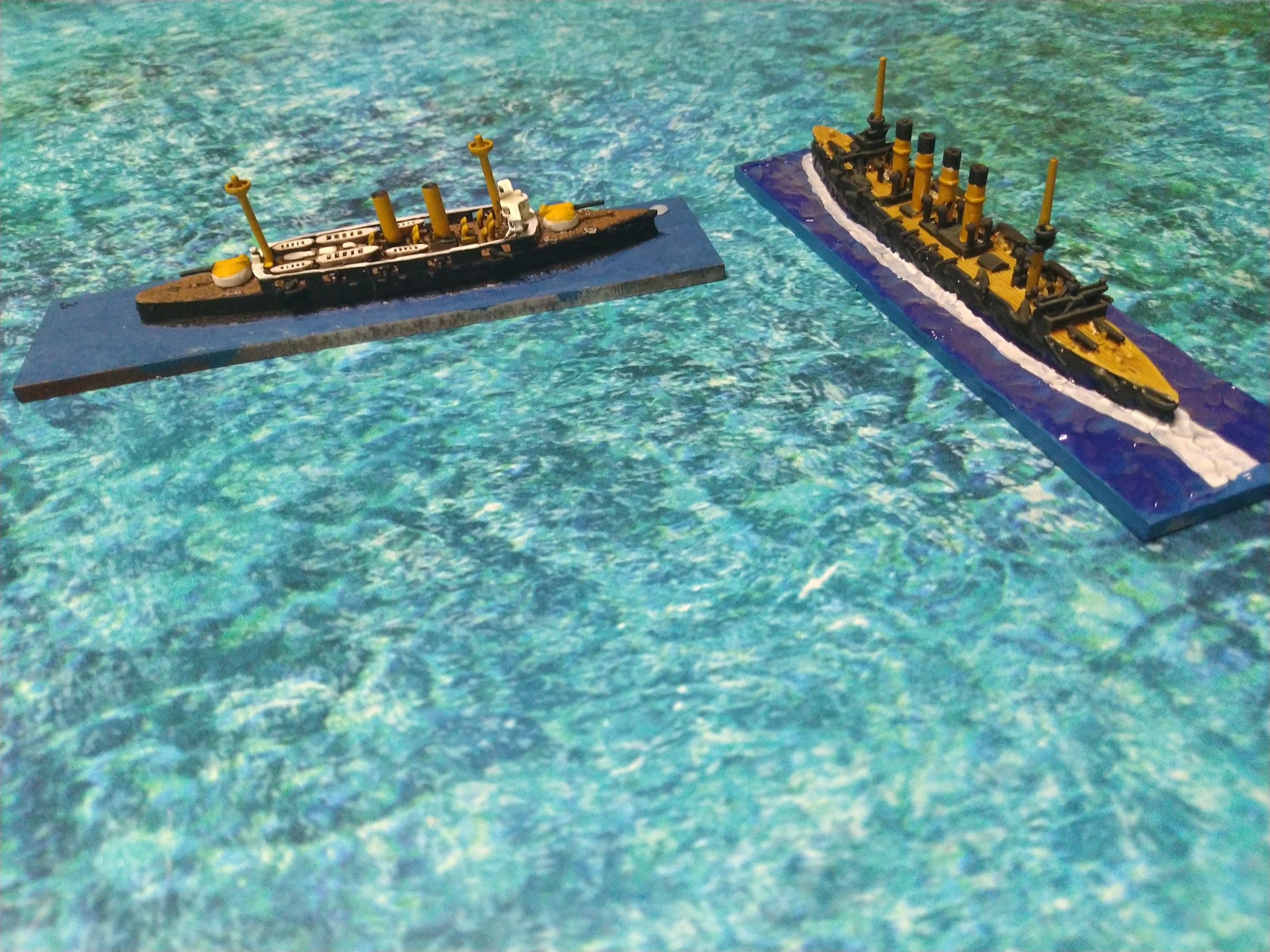 As tradition demands, we had to face each other! This time, the Americans had a battleship, and my plan to outflank them failed when my Gromoboy (or Rurik) lost its rudder.