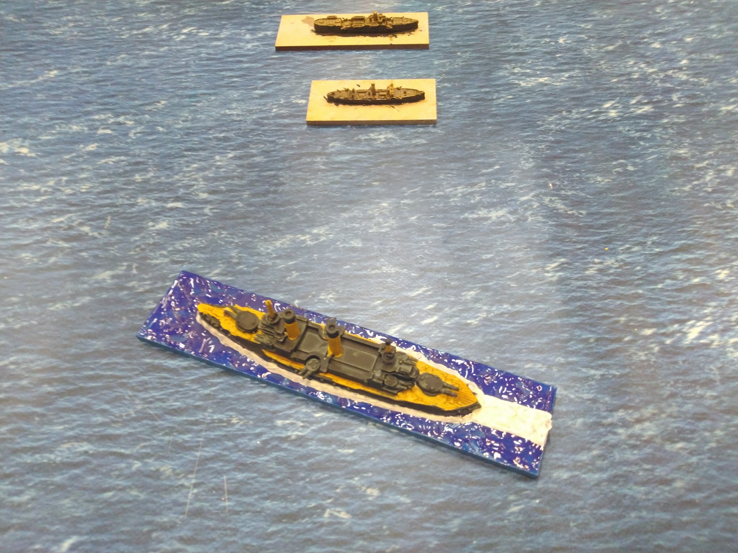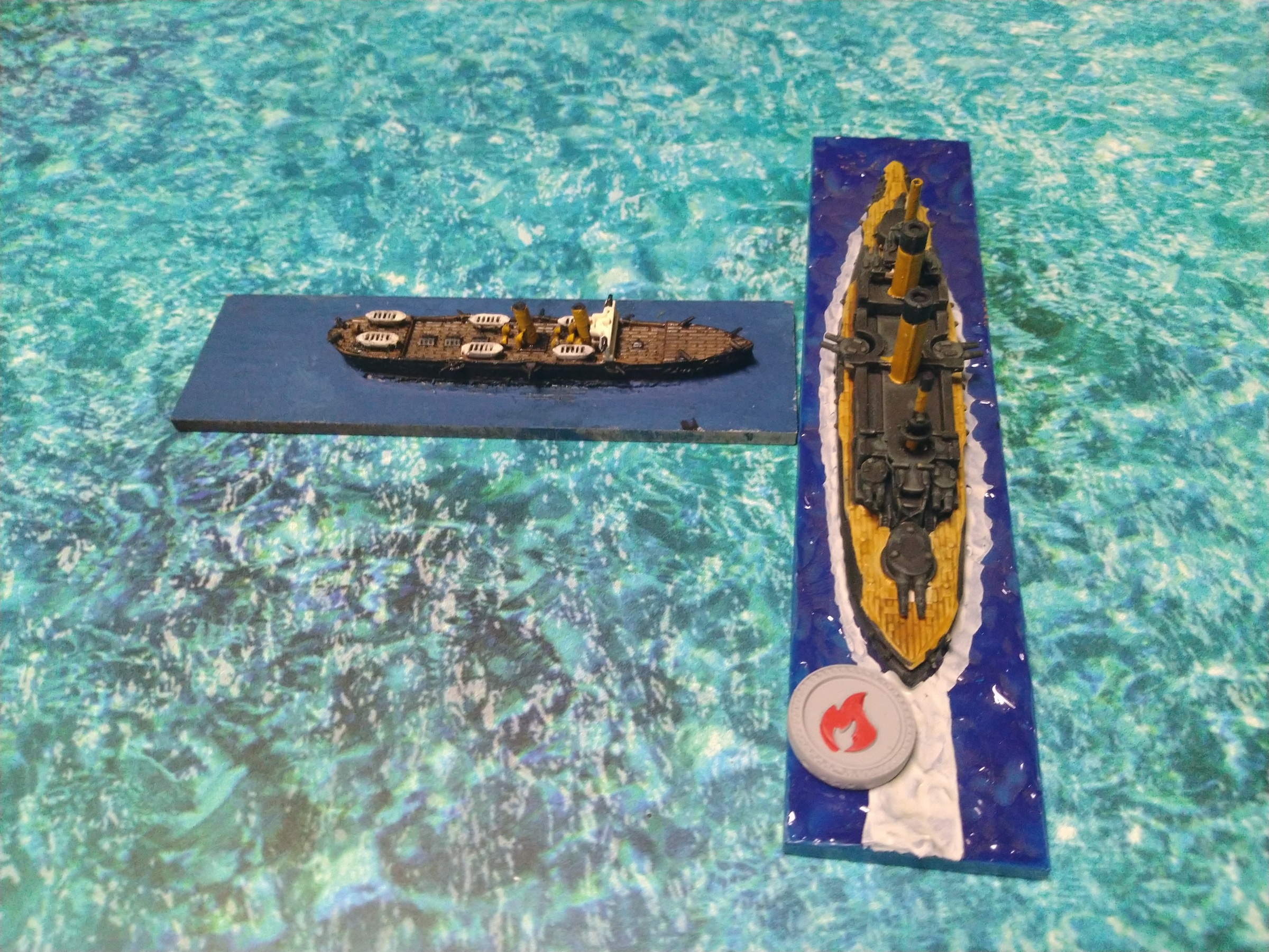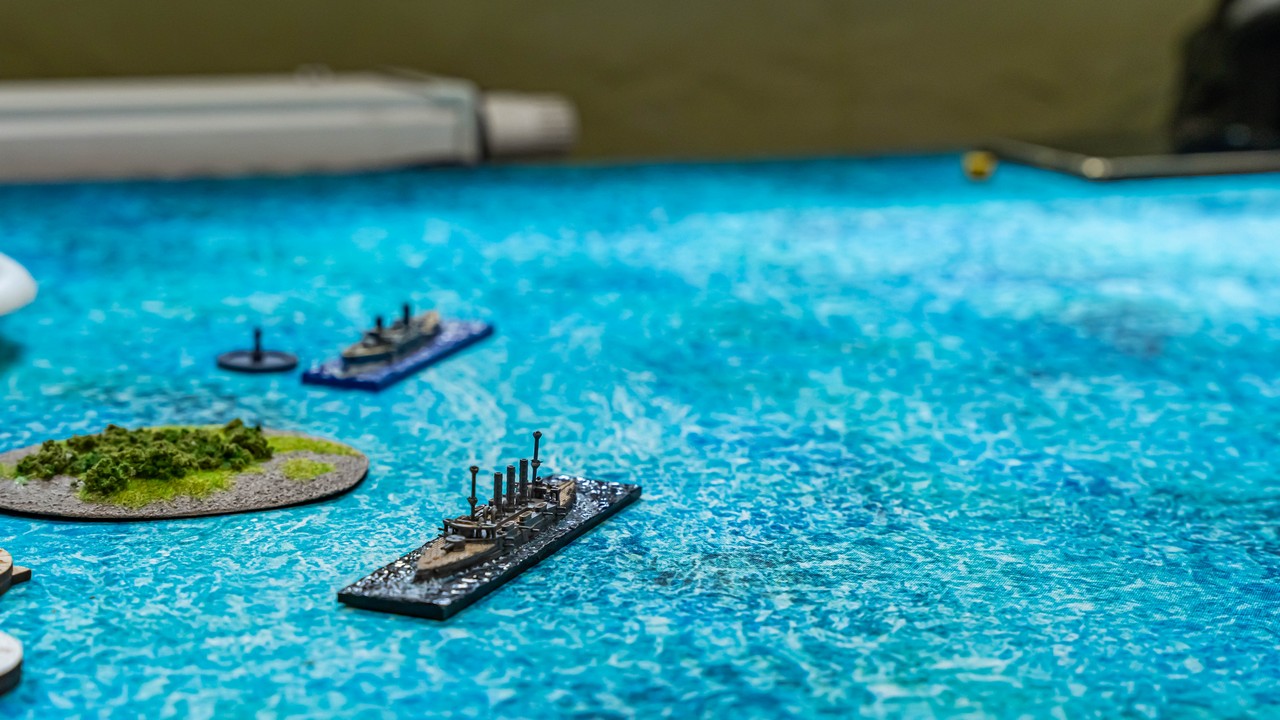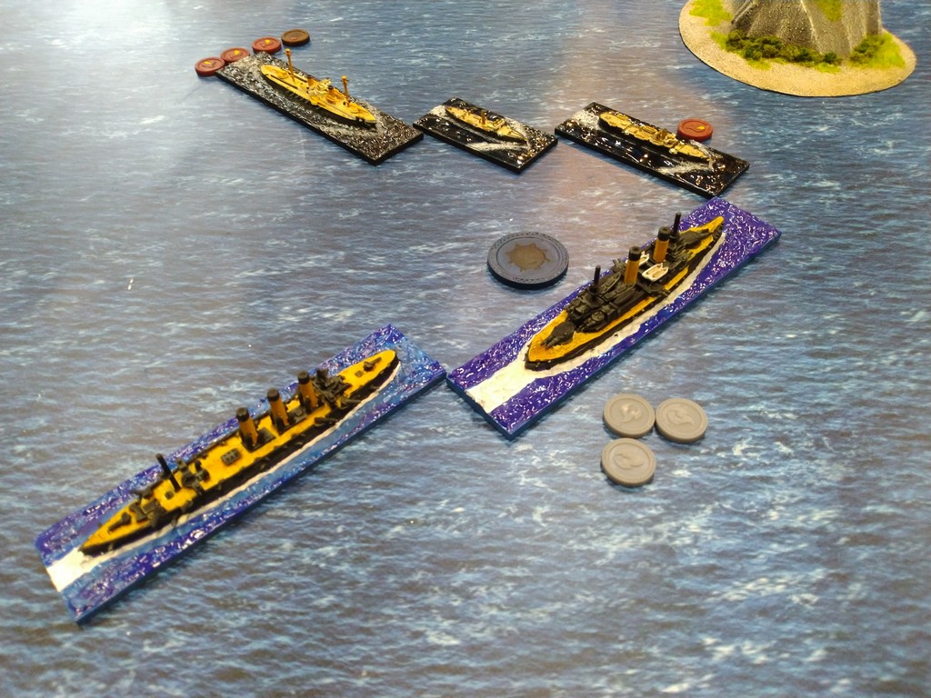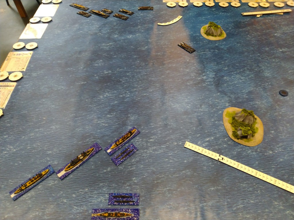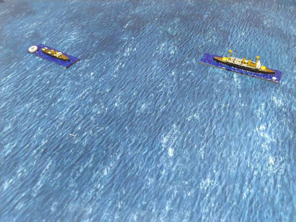 As tradition demands, we had to face each other! This time, the Americans had a battleship, and my plan to outflank them failed when my Gromoboy (or Rurik) lost its rudder.
