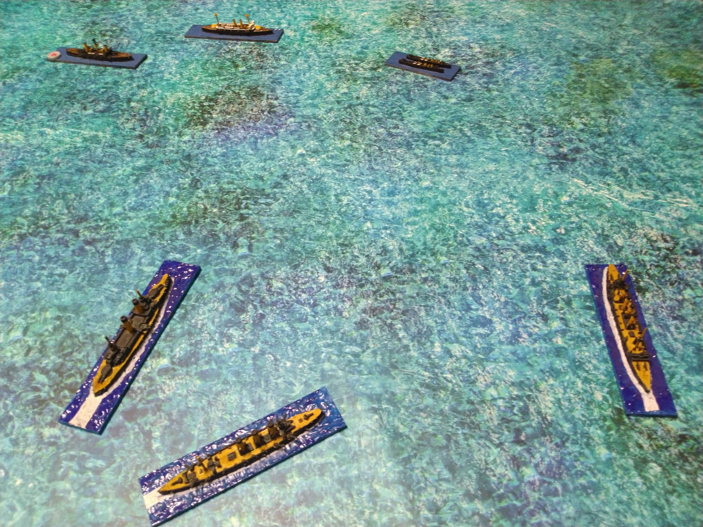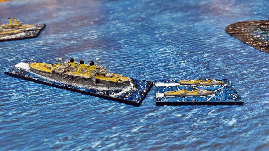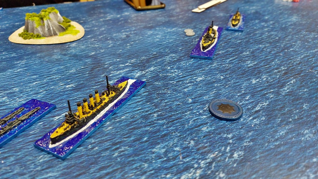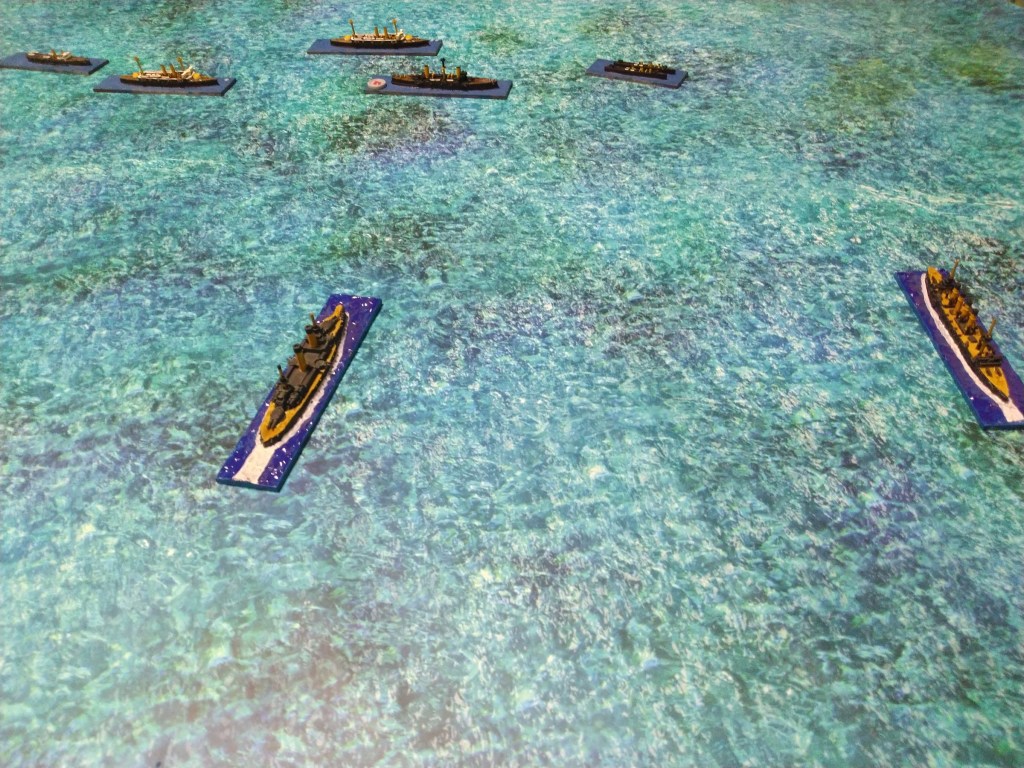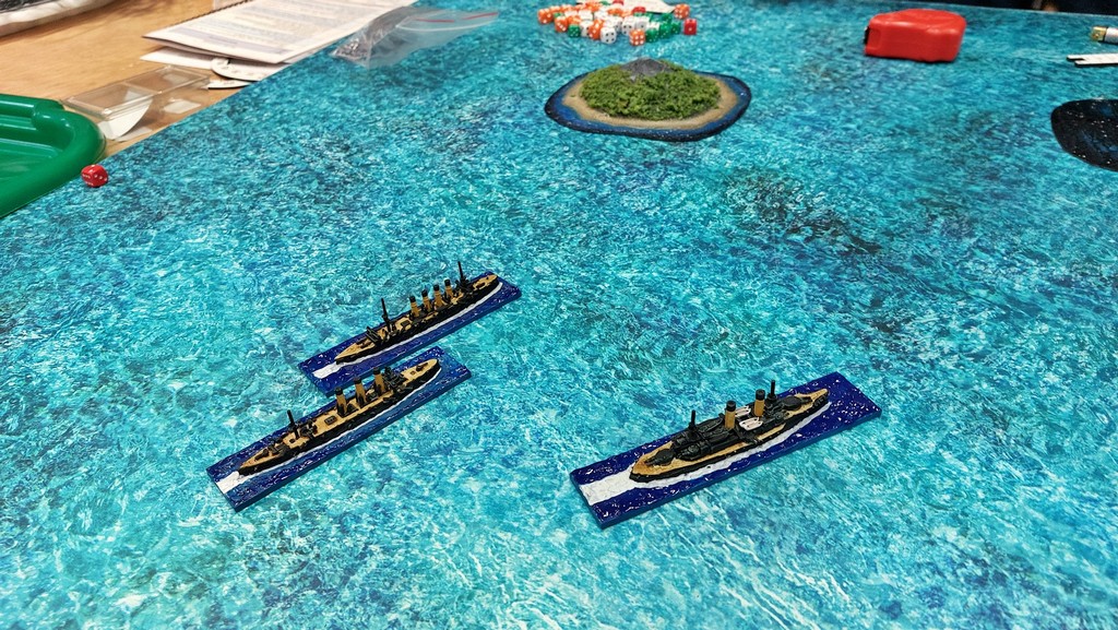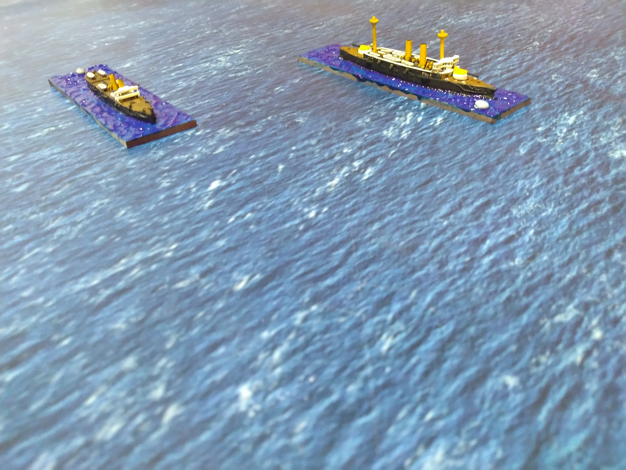 As tradition demands, we had to face each other! This time, the Americans had a battleship, and my plan to outflank them failed when my Gromoboy (or Rurik) lost its rudder.
