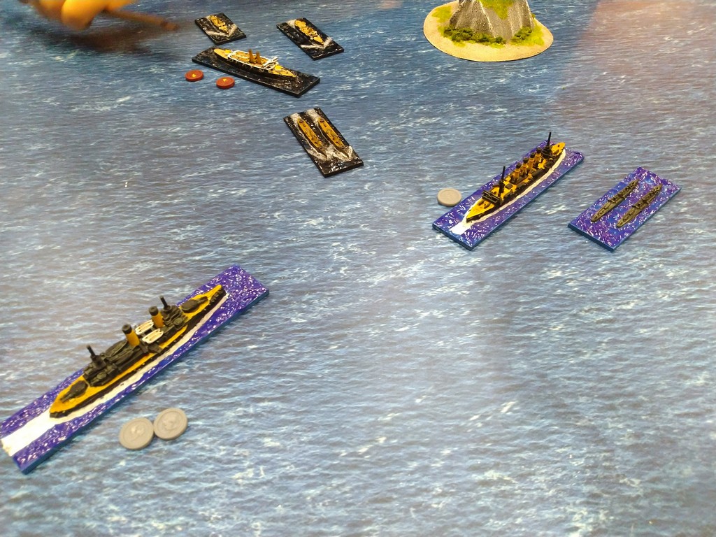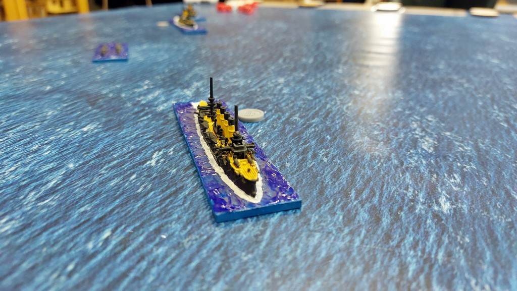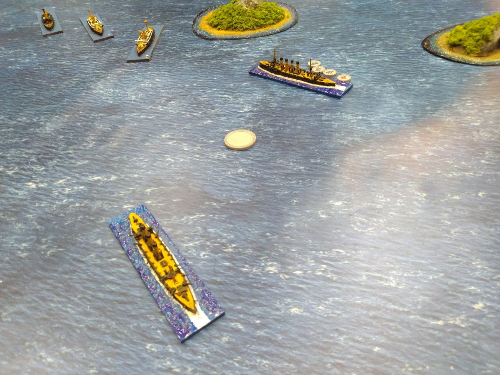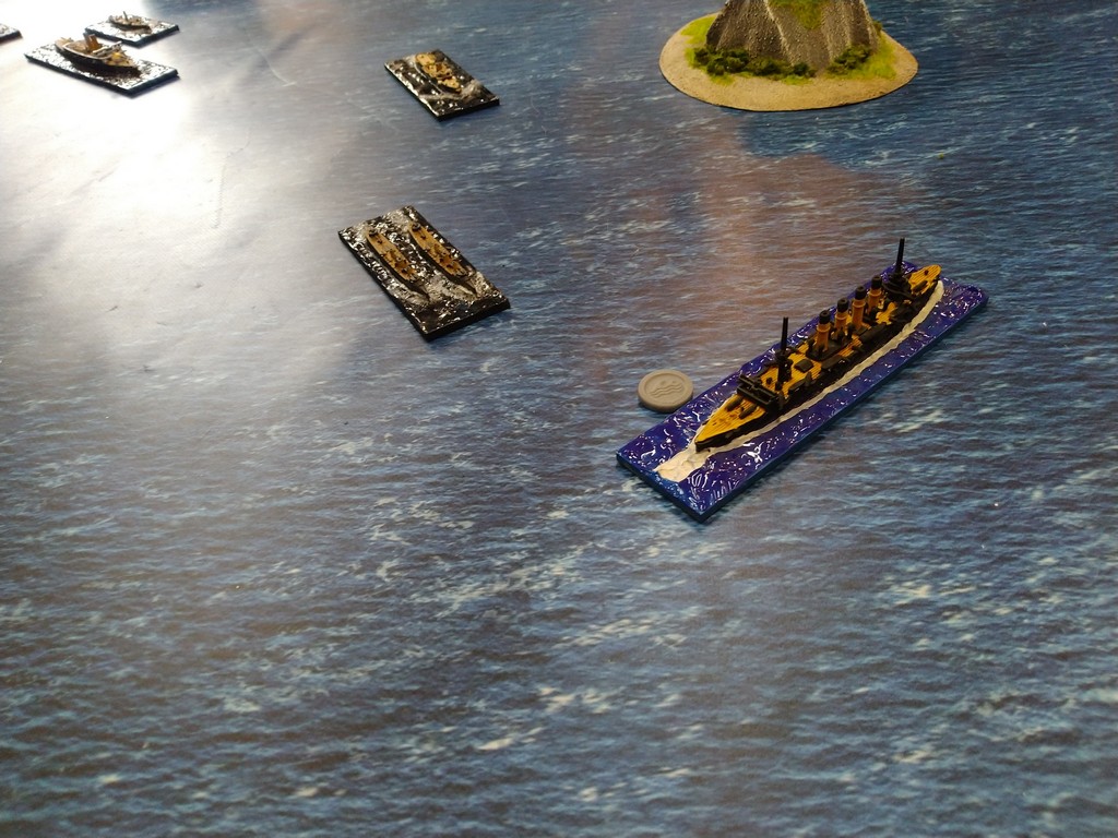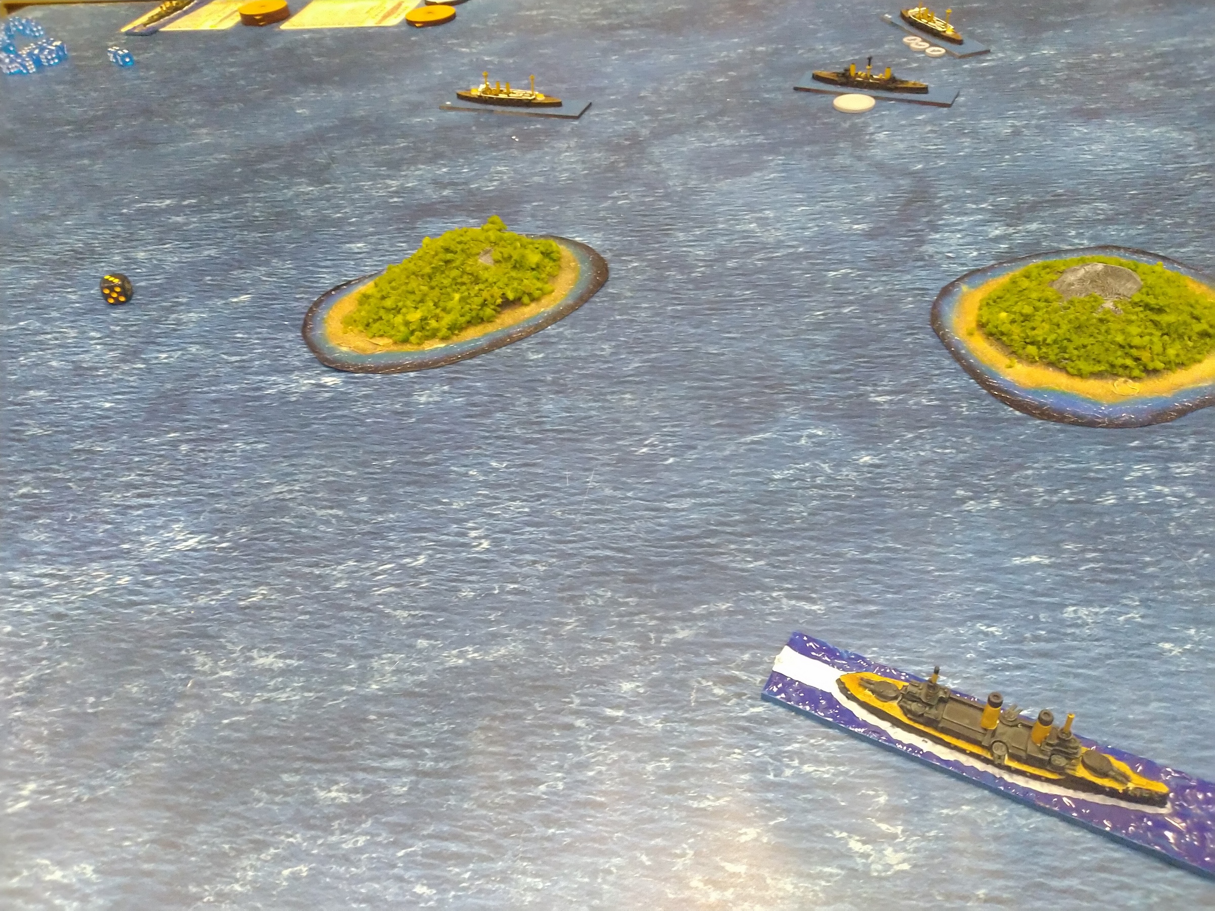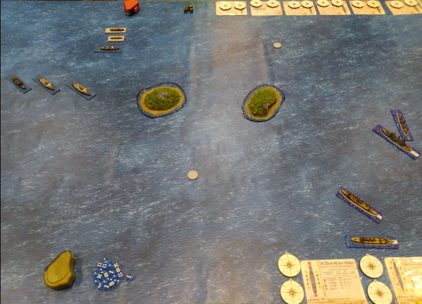 Tradycji stało się zadość – musieliśmy się spotkać! Tym razem Amerykanie mieli pancernik, a mój plan ominięcia floty przeciwnika spalił na panewce przez uszkodzenie steru na Gromoboju (lub Ruryku).
