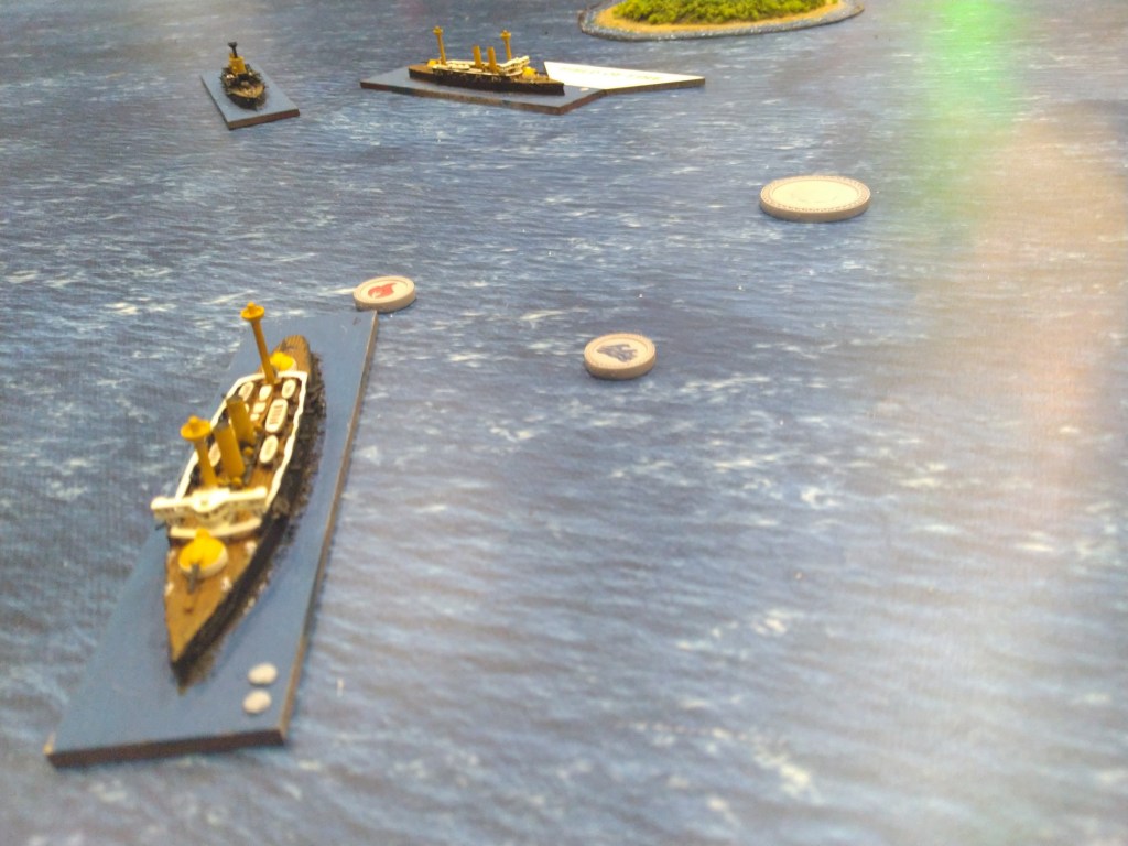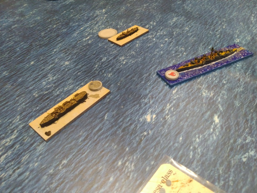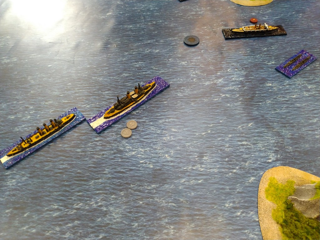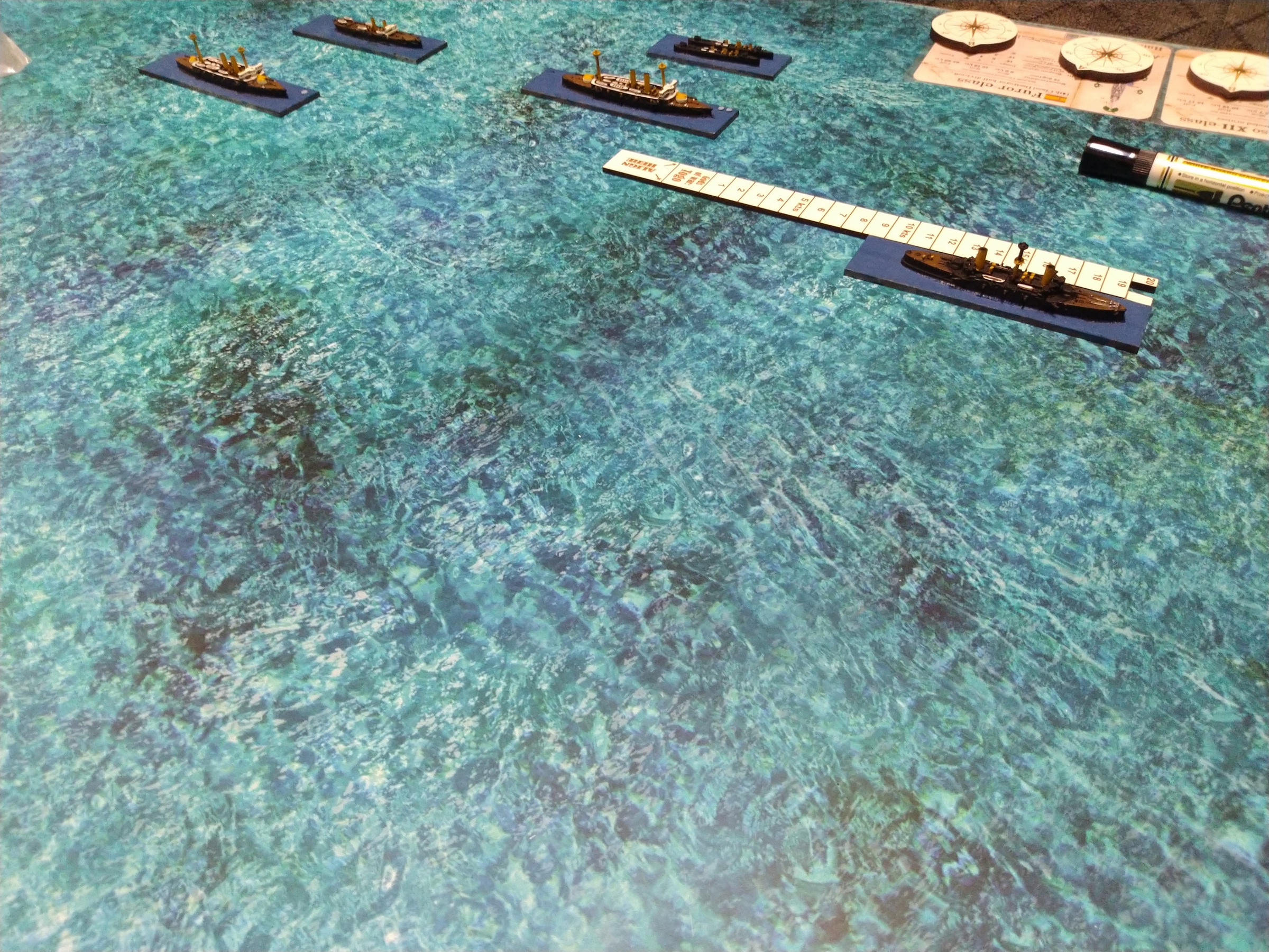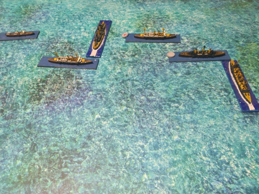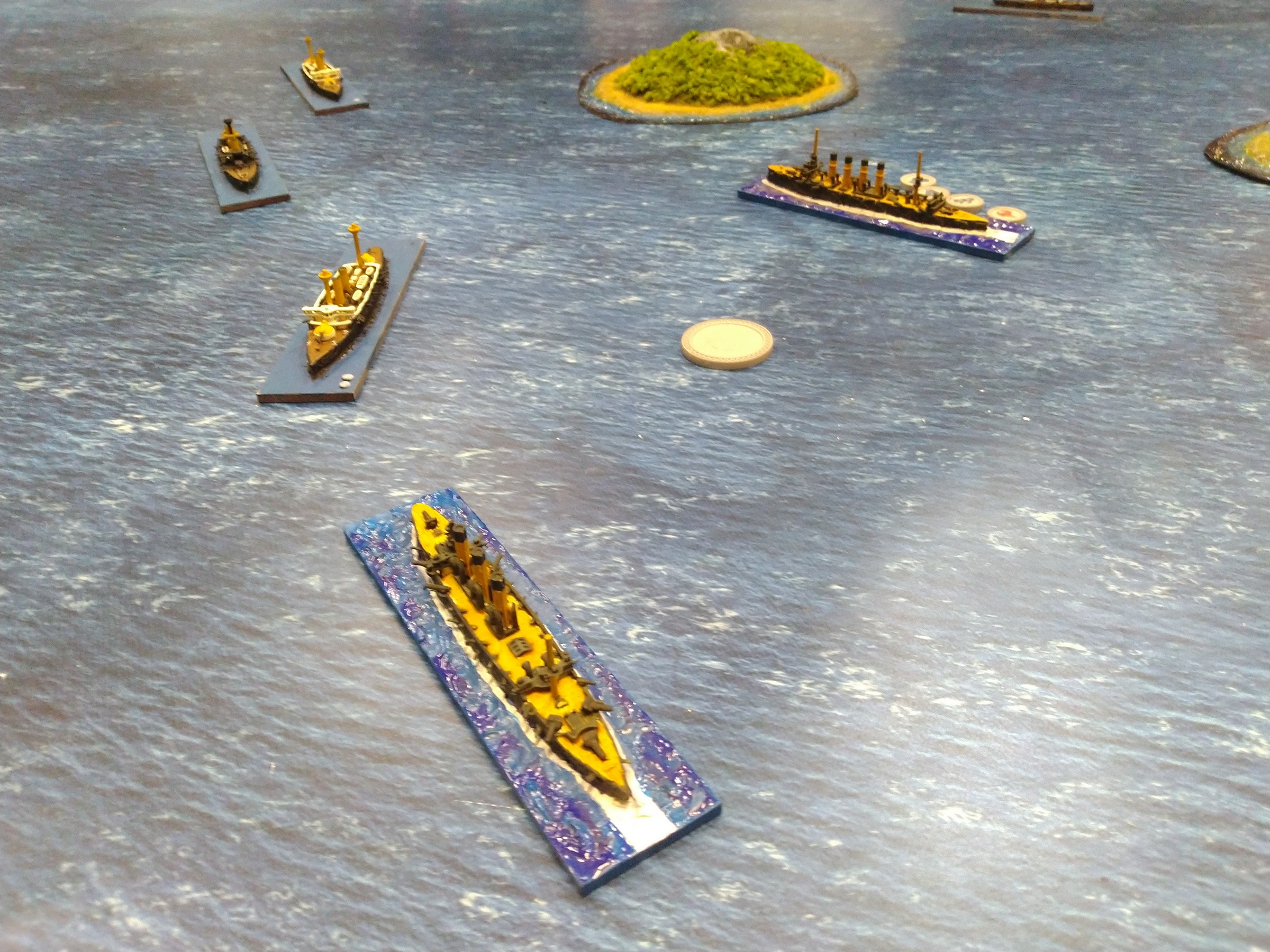 Tradycji stało się zadość – musieliśmy się spotkać! Tym razem Amerykanie mieli pancernik, a mój plan ominięcia floty przeciwnika spalił na panewce przez uszkodzenie steru na Gromoboju (lub Ruryku).