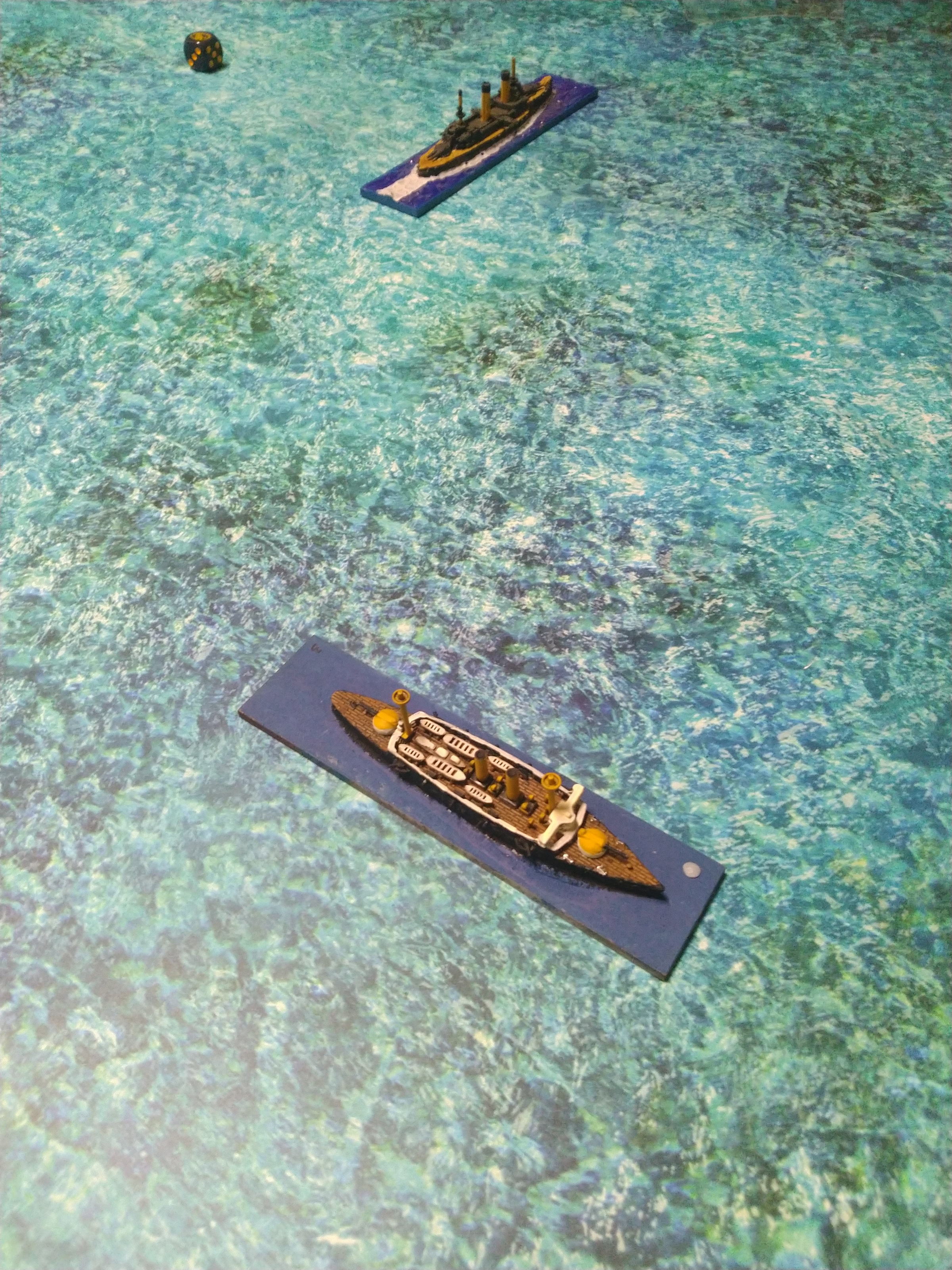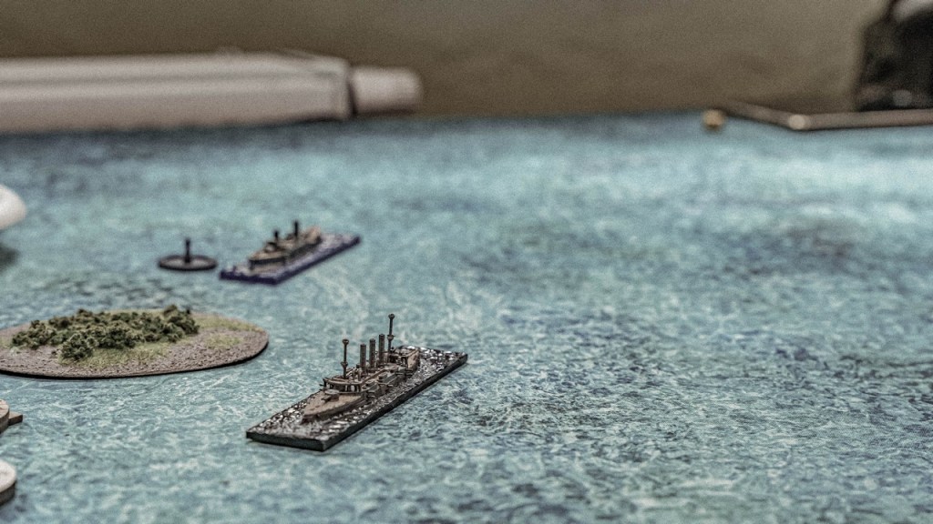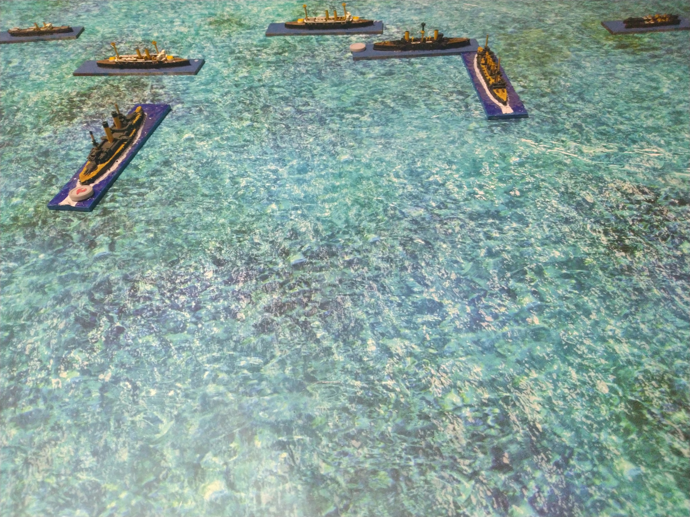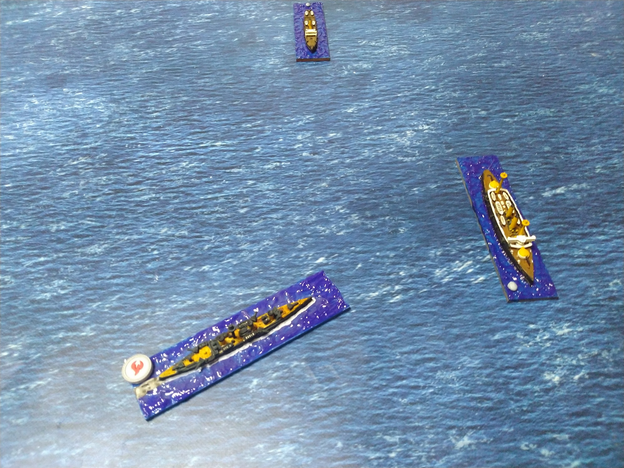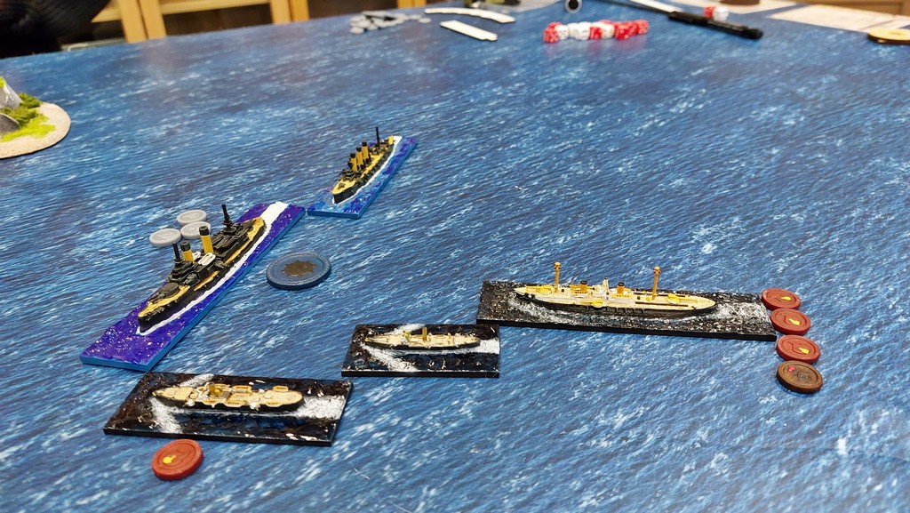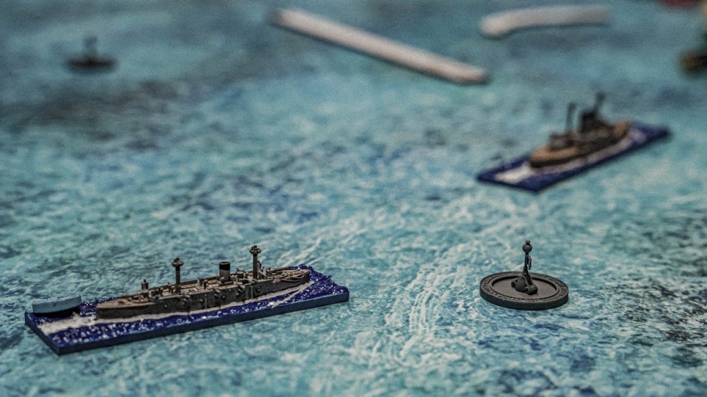 Tradycji stało się zadość – musieliśmy się spotkać! Tym razem Amerykanie mieli pancernik, a mój plan ominięcia floty przeciwnika spalił na panewce przez uszkodzenie steru na Gromoboju (lub Ruryku).