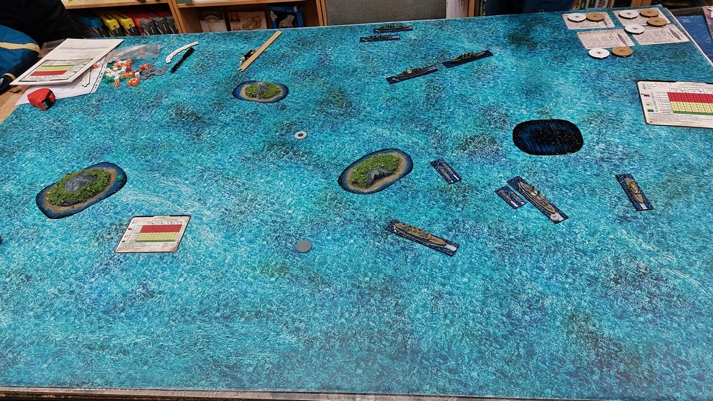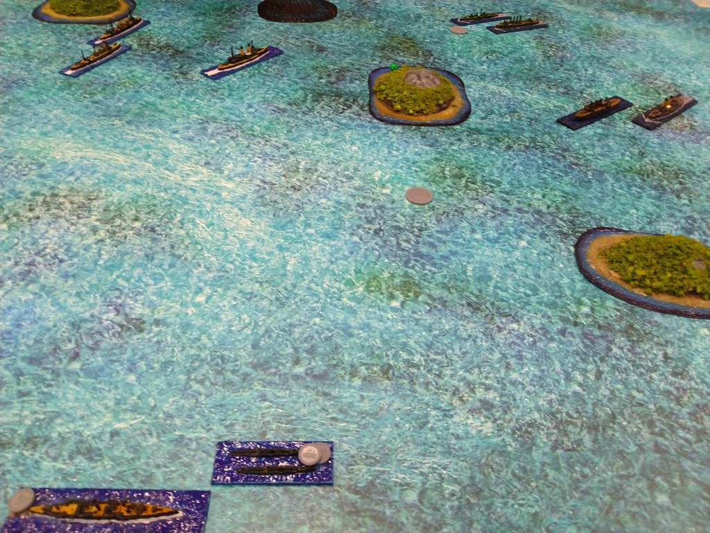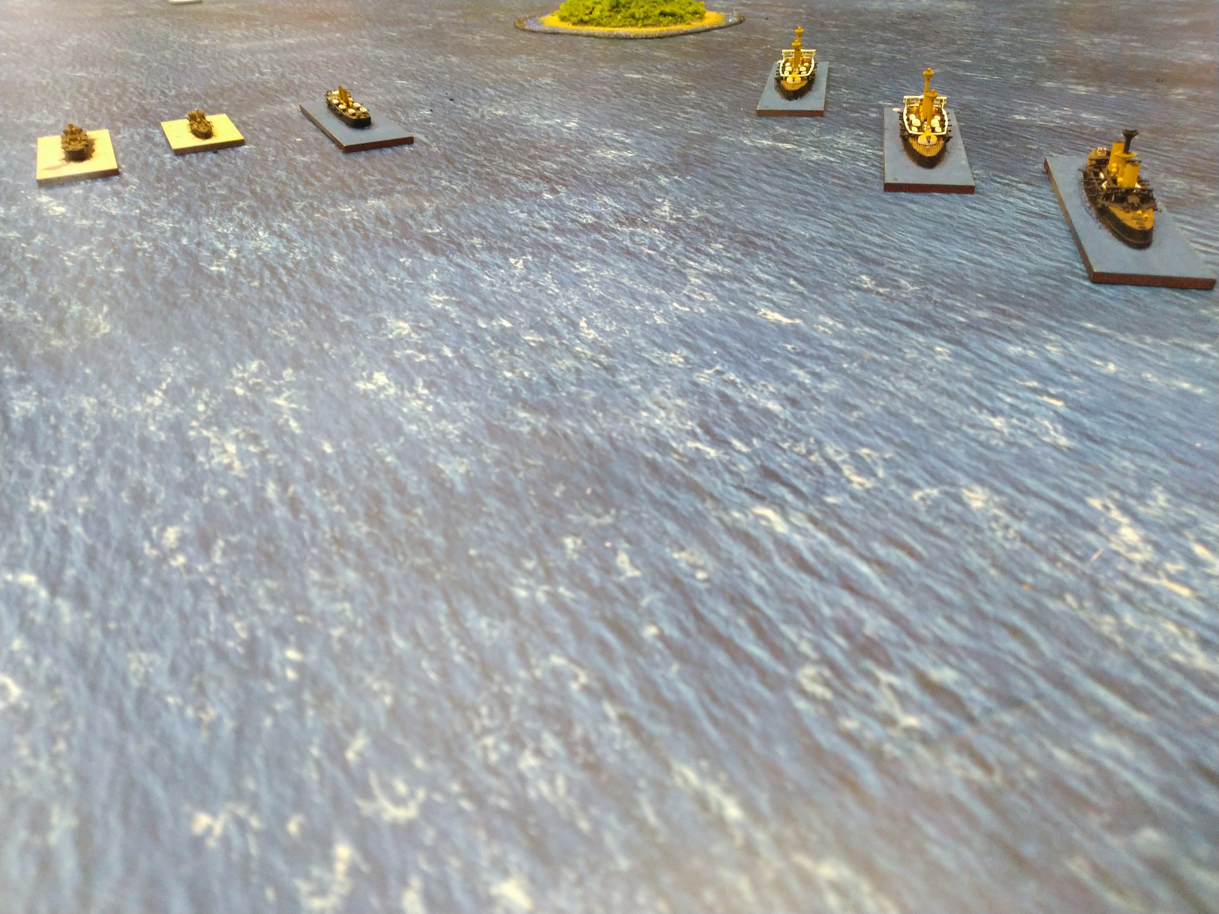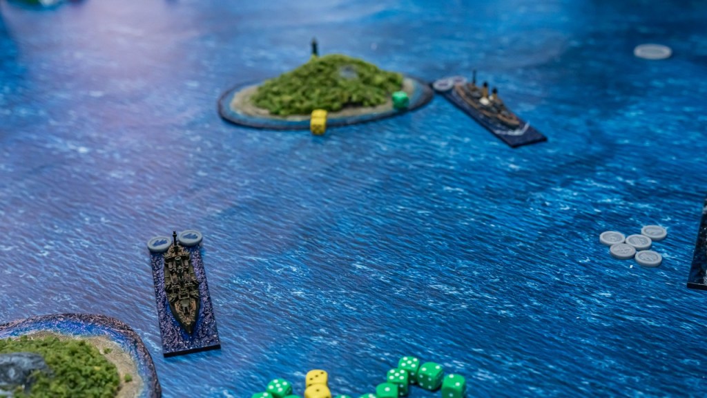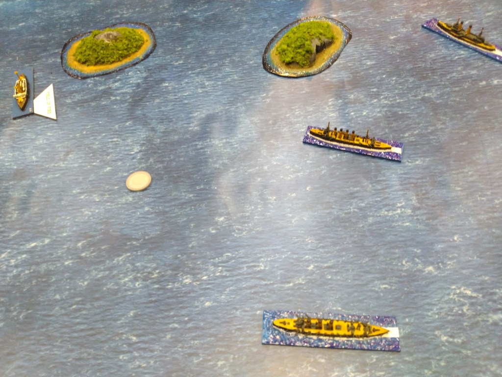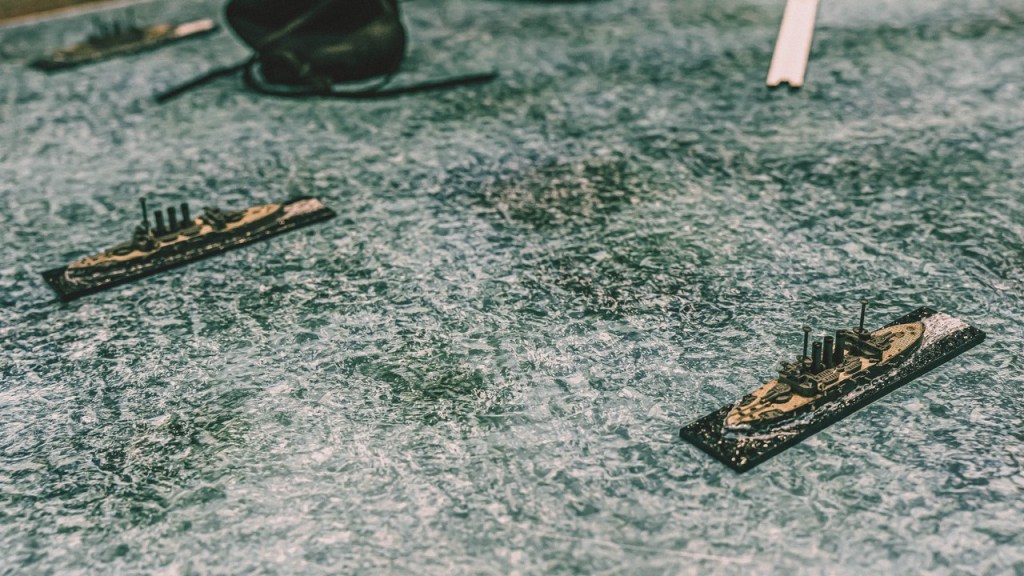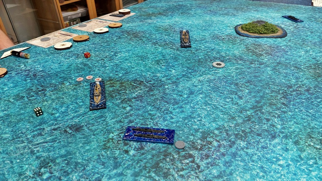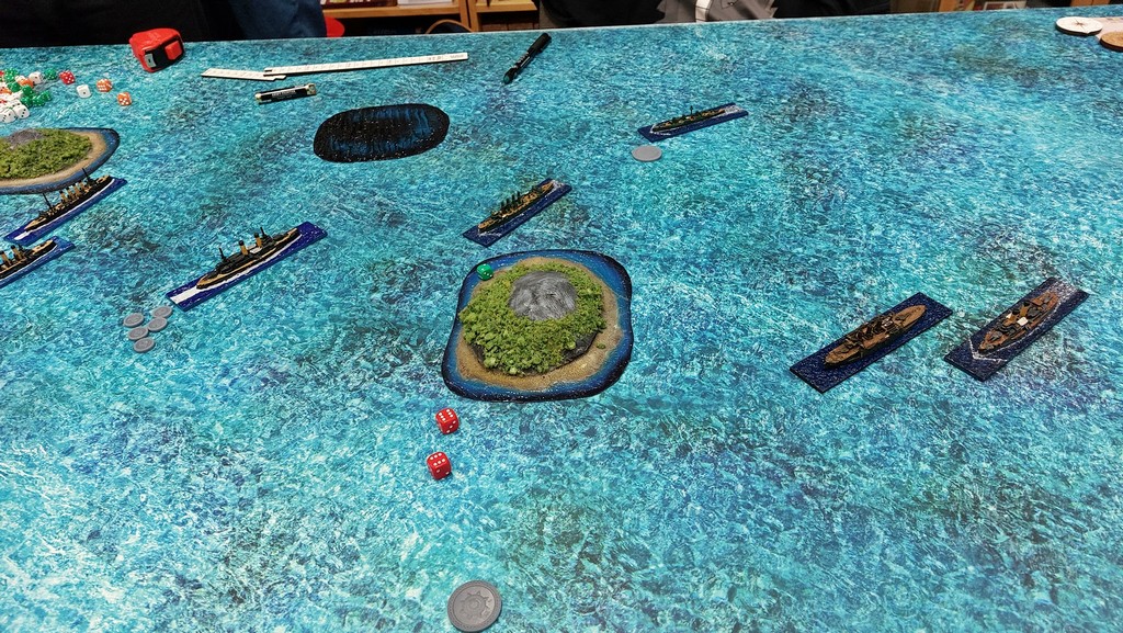 Tradycji stało się zadość – musieliśmy się spotkać! Tym razem Amerykanie mieli pancernik, a mój plan ominięcia floty przeciwnika spalił na panewce przez uszkodzenie steru na Gromoboju (lub Ruryku).