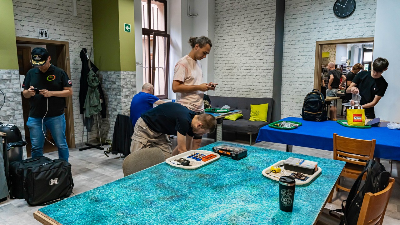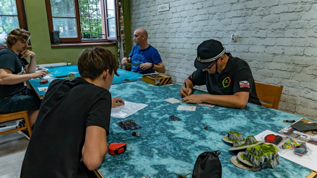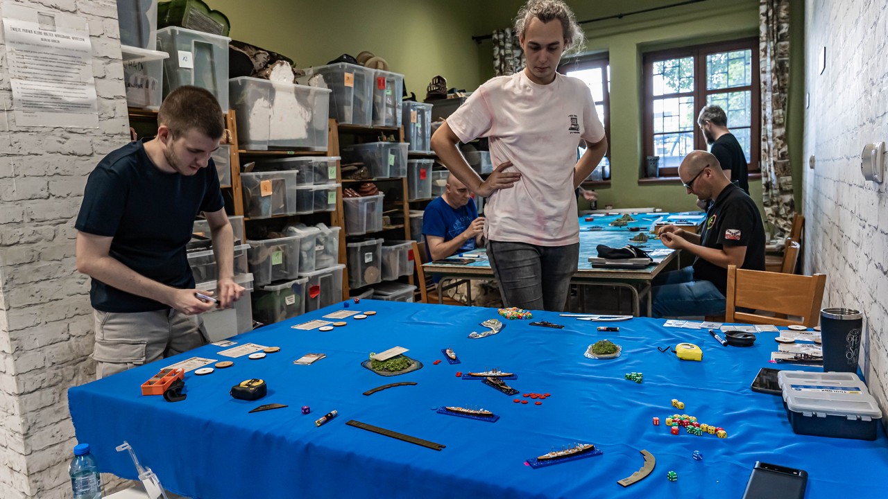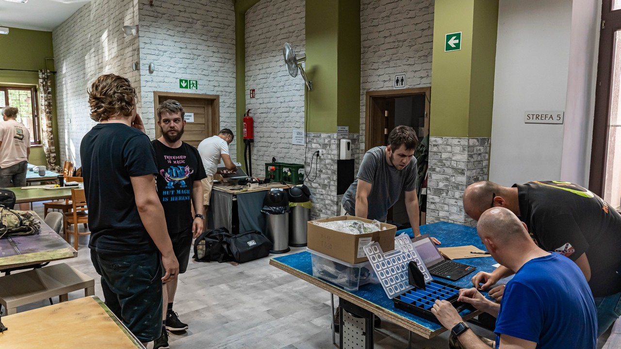On Friday afternoon, we met at Bolter to load gaming tables, mats, and terrain into cars. Once we arrived at Plac Biskupa Nankiera, we carried everything inside and began setting up the hall.