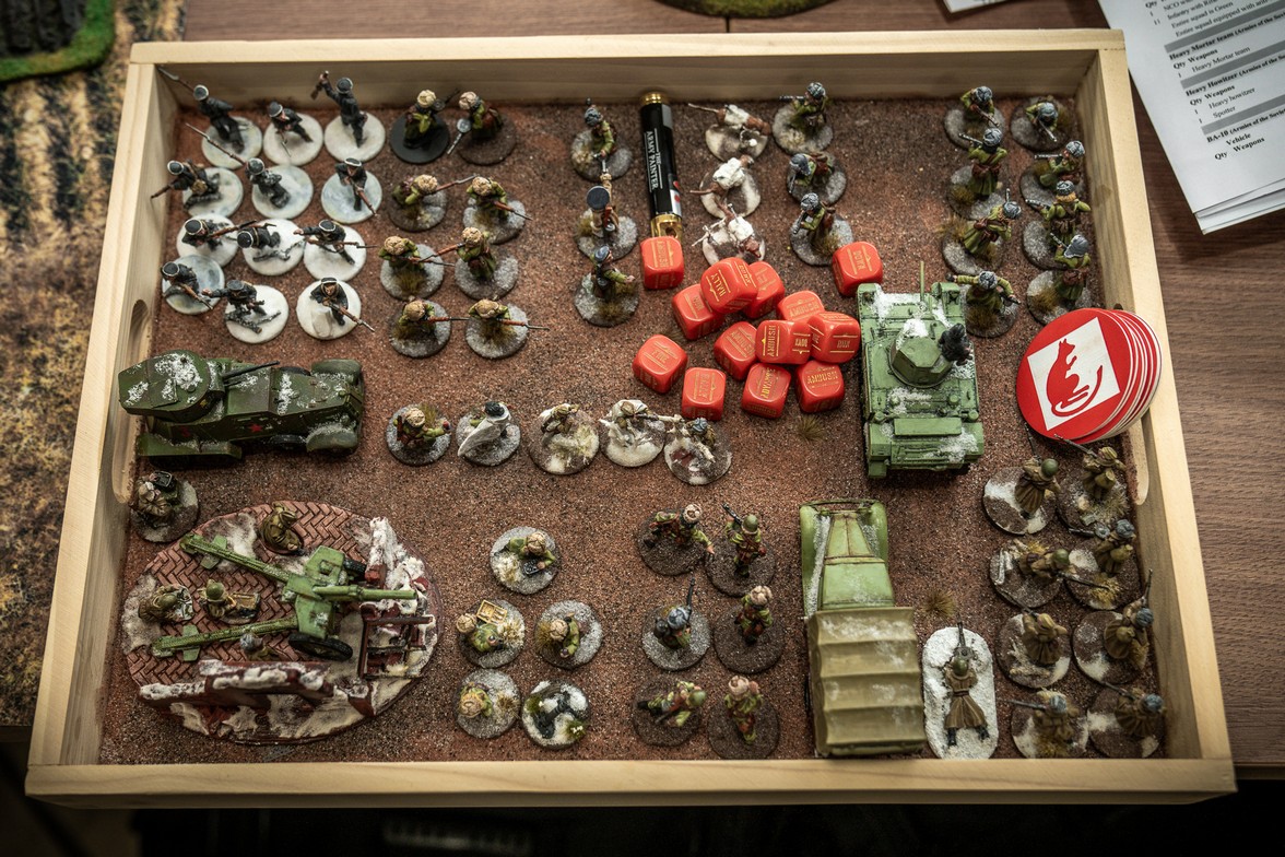 Sam turniej miał format parowy – na każdego gracza w drużynie przypadał limit tysiąca punktów i do 14 kości rozkazu. Tych ostatnich mogłoby być nieco mniej w przyszłości, ale to temat otwarty, o którym organizatorzy doskonale wiedzą – cenię sobie możliwość wyrażania opinii, a tutaj nie stanowi to żadnego problemu. Scenariusze były autorskie, co jest ogromnym plusem – zawsze miło zagrać coś świeżego. Dodatkowym atutem są dla mnie ludzie, do których lubię wracać – to właśnie ekipa z Poznania sprawiła, że nadal chętnie gram w trzecią edycję Bolt Action.