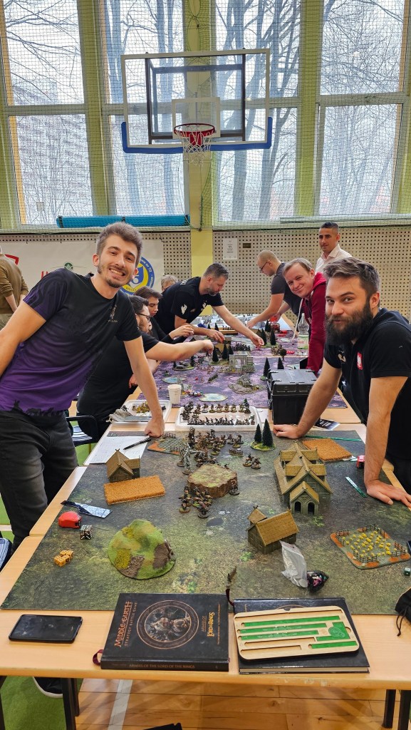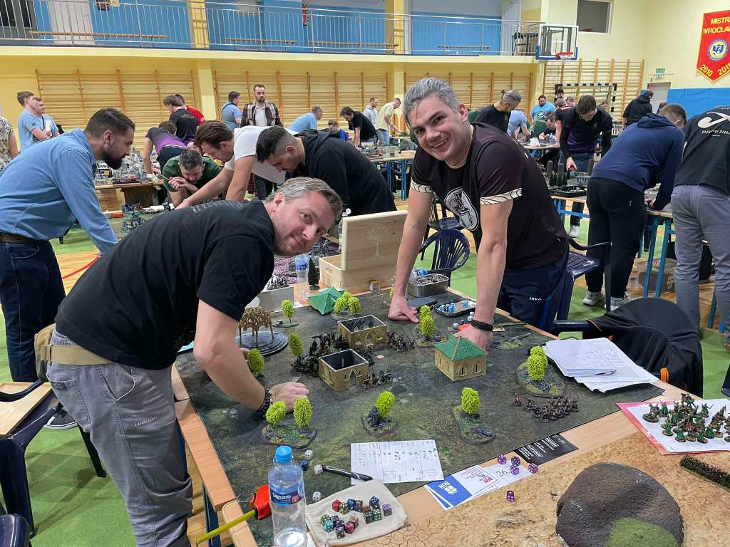 🇵🇱 Nasi drodzy uczestnicy przybyli do nas z Bydgoszczy, Białegostoku, Bielska Białej, Katowic, Krakowa, Lublina, Poznania, Warszawy (Ci ostatni przywieźli 13 stołów, jeszcze raz dzięki!). Nie jestem pewny, czy nie pominąłem jakiegoś ośrodka – a jeśli dajcie znać – uzupełnię! Wszyscy mieli okazję stanąć do sześciu potyczek, były to gry na 555 punktów, rozgrywane według najnowszej edycji Middle Earth: SBG. Nowa edycja, odświeżone zasady i nowe, ale stare armie, tylko podzielone na różne legiony, związane mocno ze scenami z filmu. Jako organizatorzy z Gdzie był Wrocławdołożyliśmy wszelkich starań, aby był to najlepszy master jakiego zorganizowaliśmy – w tym roku pierwszy raz pojawił się catering który pochodził z Margaret– w mojej opinii bardzo dobry, chociaż dla niektórych porcje mogłyby być większe, był cały czas ogólnodostępny stół z ciastami, herbatą i kawą. Uśmiech na twarzach uczestniczących osób i dobra zabawa, to najlepsze co może czekać organizatorów, pytania o las na 41 stole – tak, to był las z Tereny Do Gier, który wypożyczono nam w ramach wsparcia.
