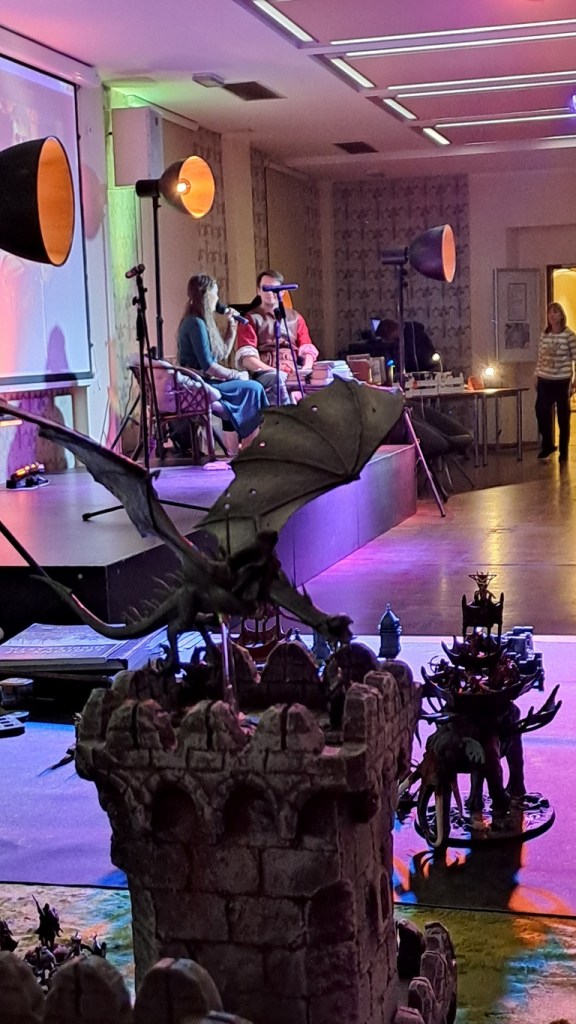 Paraolimpiada na obu stołach 😉 .Sztandar poświęcony DMP 2024.Quiz o Śródziemiu Adasia.Mega ciekawa gra z Andrzejem z Krakowa.Gra z Piotrkiem, jak zawsze przyjemna – nigdy wcześniej nie grałem na trolle.Dzięki Max za kawiarnię! Thank you Max for coffee corner!Gra z Jacentym, przegrana na własne życzenie, a było się tarczować na orki po wyjściu Saurona 😉 .Nasi sponsorzy i stół pełen nagród! Lothorien, loved and hated 😉 .