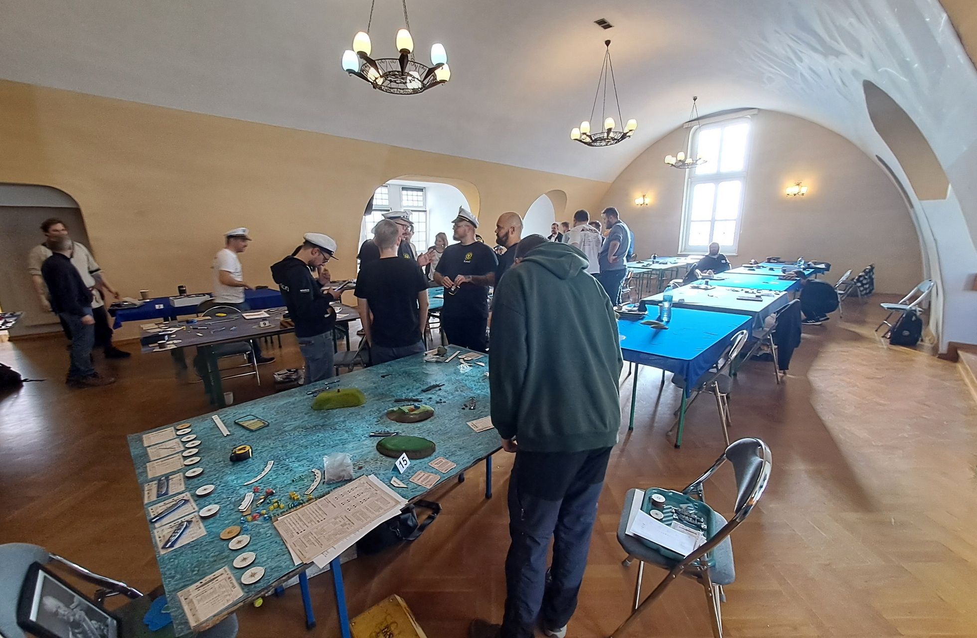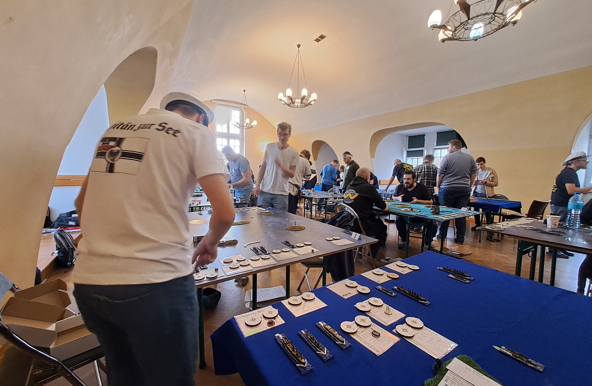 First day! Dzień pierwszy!Start!First game with great admiral Miko. Pierwsza gra z świetnym admirałem Miko.Maciej „Torgill” Molczyk.Miko and Sighorn.Second game with admiral Gabriel. Druga gra z admirałem Gabrielem.Special prize for everyone. Specjalna nagroda dla każdego.Special prize for everyone. Specjalna nagroda dla każdego.Special prize for everyone assembled Sunday morning. Specjalna nagroda dla każdego złożona w niedzielny poranek.Sunday morning. Niedzielny poranek.Ossolineum.Day two of fun. Dzień drugi zabawy.Fourth game with admiral Krystian, I missed game number three. Gra numer cztery z admirałem Krystianem, zgubiłem grę numer trzy.Some break to visit Mausoleum of the Silesian Piasts. Krótka przerwa by odwiedzić mauzoleum Piastów Śląskich.Game number five with great admiral Sighorn. Potyczka numer pięć z wielkim admirałem Sighornem. Main prizes. Główne nagrody.My teammate from Fubar Team and Gdzie był Wrocław. My kompan z Fubar Team i z Gdzie był Wrocław.Painting competition. Konkurs malarski.Armada Espanola.Nippon Kaigun.Aspirant Rossiyskiy Imperatorskiy Flot.Kaiserliche Marine.Armada Espanola. Some tables were moved downstairs. Trochę blatów zostało już zniesionych. I love this view! Kocham ten widok!All participants and organizers together. Uczestnicy i organizatorzy.