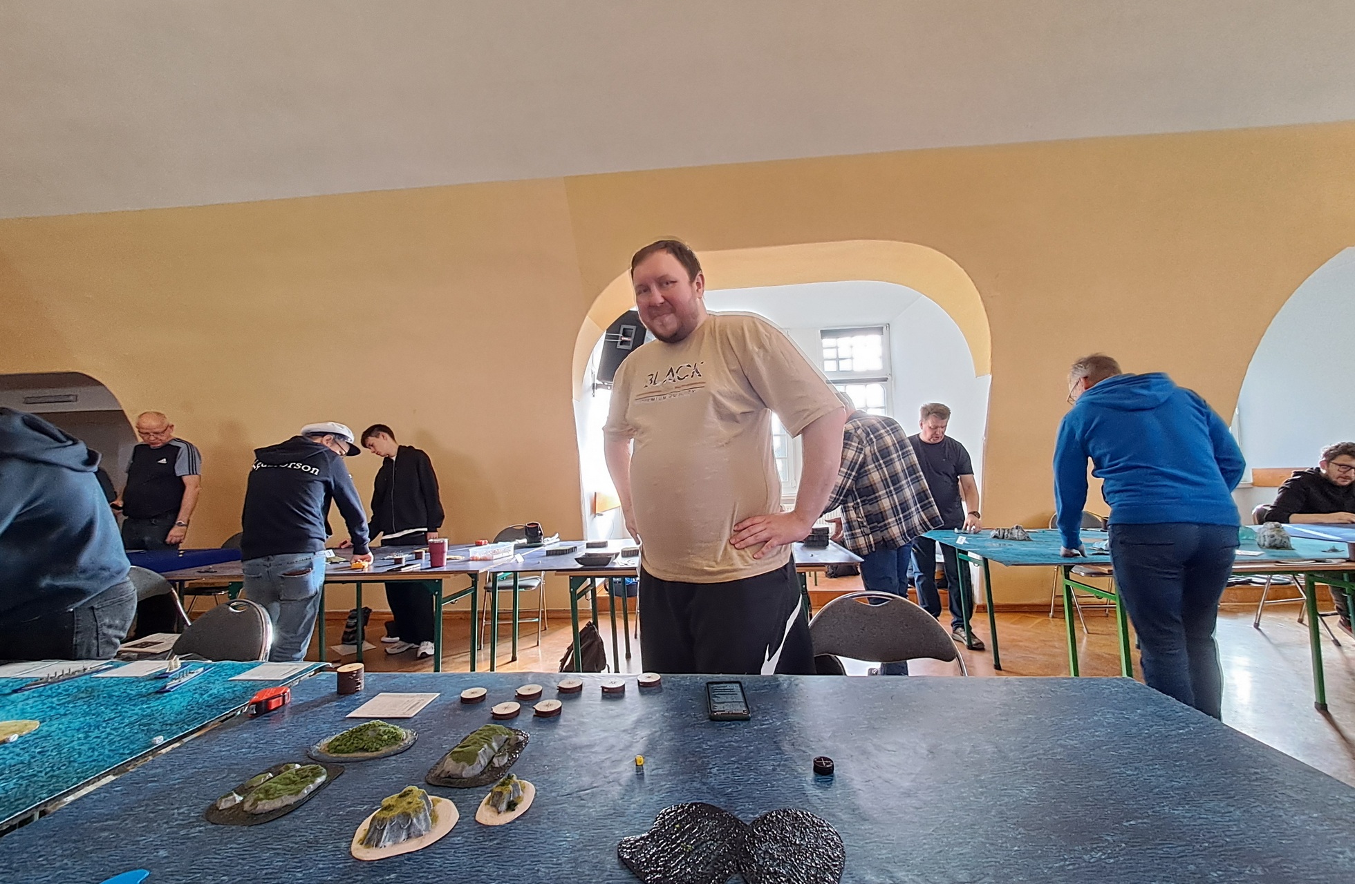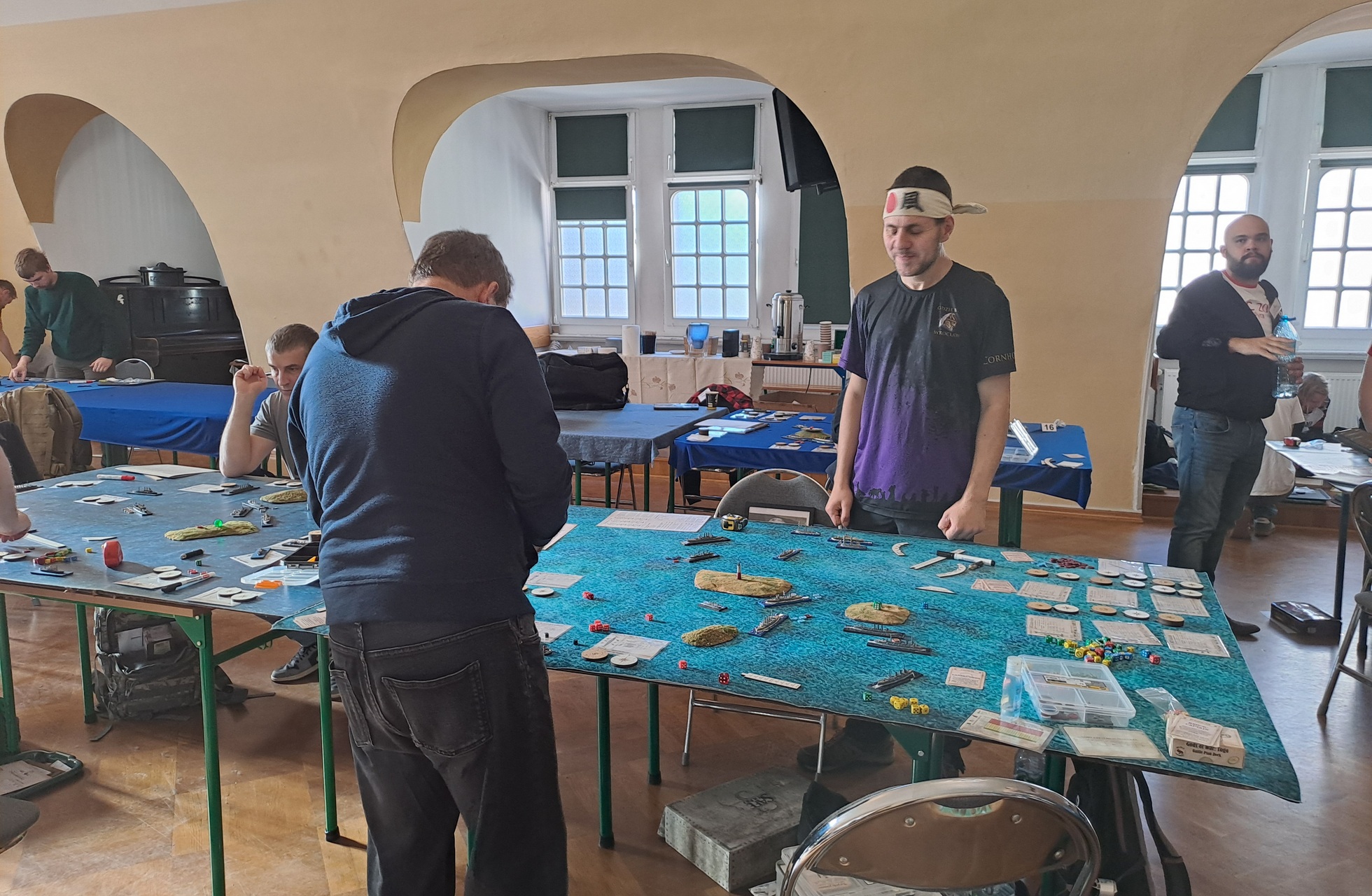 On Friday afternoon, we met at Bolter to load gaming tables, mats, and terrain into cars. Once we arrived at Plac Biskupa Nankiera, we carried everything inside and began setting up the hall. After several hours of work – and plenty of heavy lifting – I fell asleep the moment I got home.